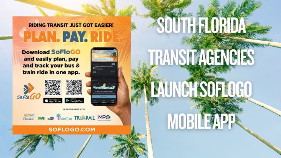 SoFloGO brings together four major transit systems — Tri-Rail; BCT; Palm Tran; and DTPW’s Metrorail, Metrobus, and Metromover services — into one intuitive platform.