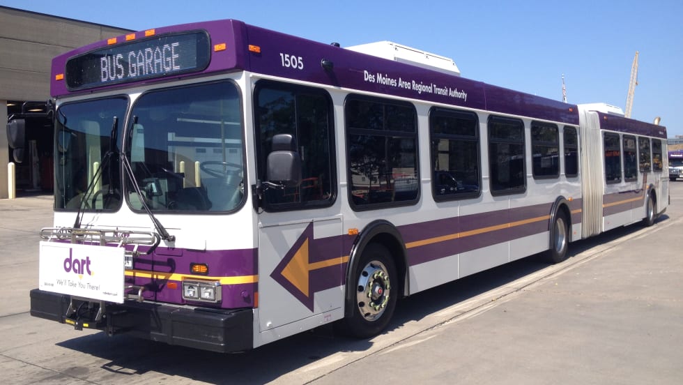 The 60-foot low-floor buses are replacing high floor buses and include newly installed ramps, remanufactured power trains, transmissions, engines, brakes, and are equipped with two ADA-compliant wheelchair positions.