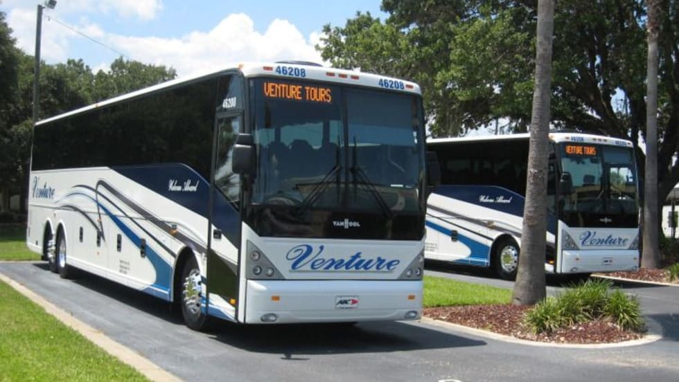 The new 55-passenger coaches have the Angel Trax security monitoring system; DriveCam; wood grain flooring; and Amaya passenger seats custom built to Venture's specification, which includes three-point seat belts and other luxury and safety options.