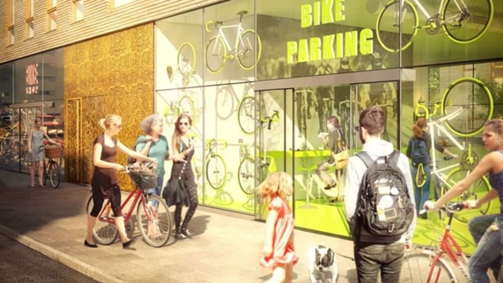 Located near a major train station, the garage will include a bike repair shop and changing rooms where commuters can shower, dress for work, and leave their helmets in lockers.