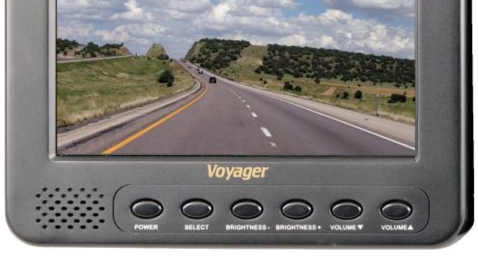 The Voyager AOM562A, a 5.6-inch, heavy-duty color LCD two-camera observation monitor, aids drivers in backing up, changing lanes, merging into traffic and making wide right turns.