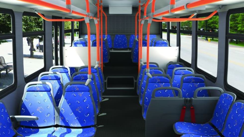 The new cab entry bus, built on the Ford E450 chassis with a 158-inch wheelbase, features an expanded, spacious interior that fits up to 21 passengers.