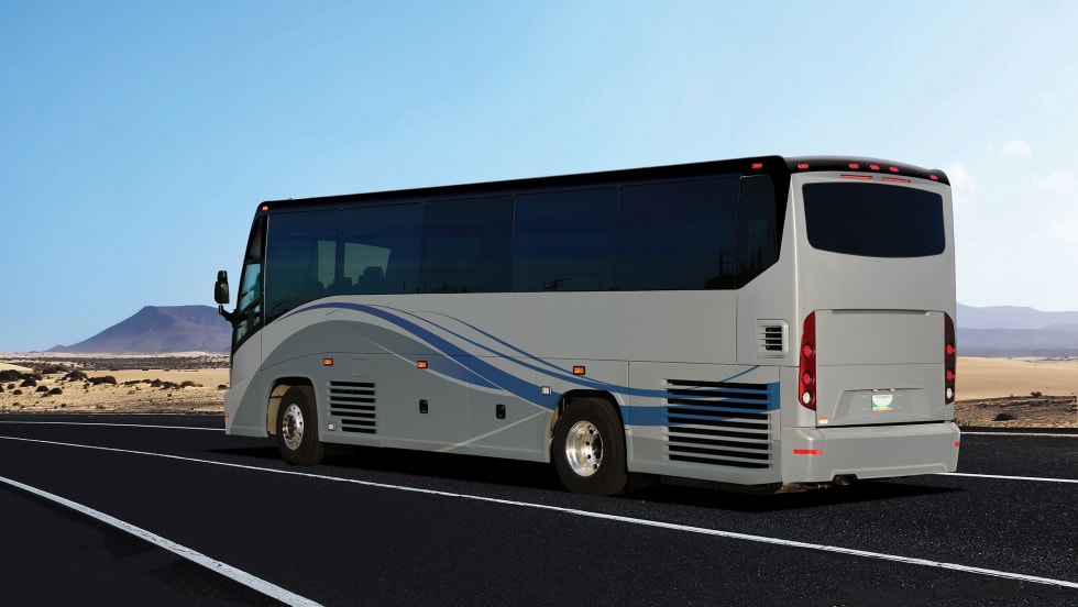 The bus is produced using a monocoque body attached to an original equipment manufacturer cab frame having the chassis removed.
