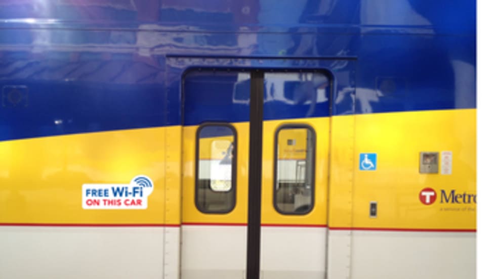 The “cab car” of each train will be marked with graphics inside and out that designate it as the location for free customer Wi-Fi access.