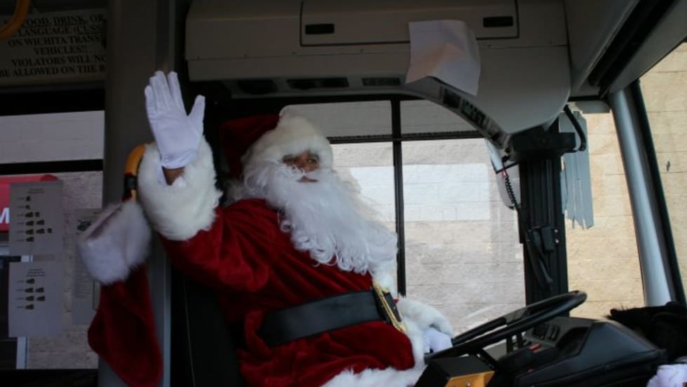 Wichita Transit buses stopped at 68 different locations in Wichita and Hutchinson, Kan., December 1 to 6, collecting gifts donated from local businesses, schools, retail stores and individuals.