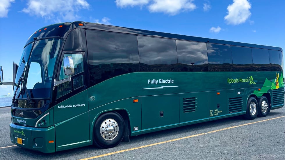 Supported by funding from the Hawaii State Energy Office and the Department of Health through the Diesel Replacement Rebate Program, the fully electric motorcoaches help to meet the state’s net-negative emissions targets.