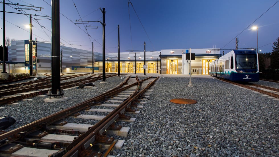 The new OMF East will enable extensions to Lynnwood, Federal Way, and Redmond, Washington. The facility was delivered by the design-build team of Stantec, Hensel Phelps Construction Co., and partners. Construction started in 2018.
