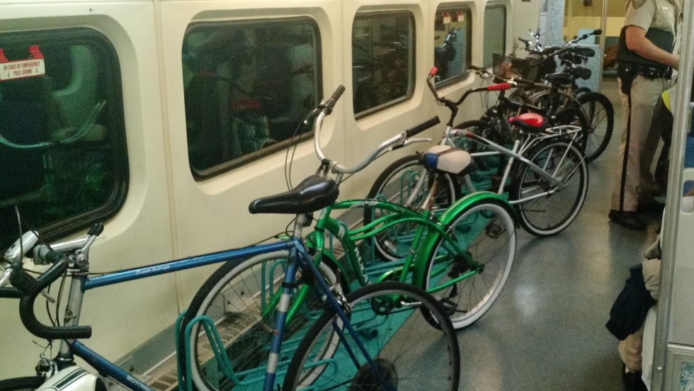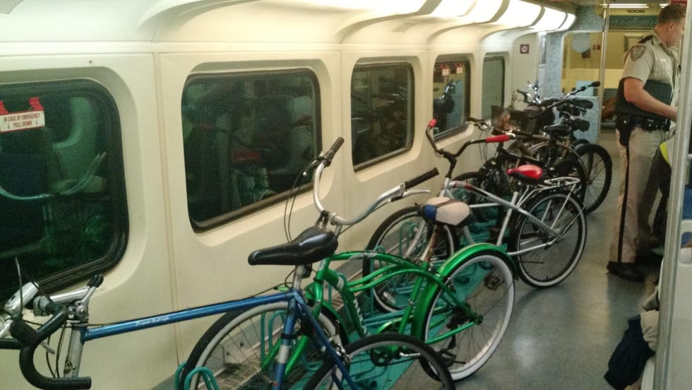 The new bike car contains 14 racks that will provide more room to maneuver bicycles on and off the train. A set of seats were removed from the lower level of the vehicle to make room for the bike racks.