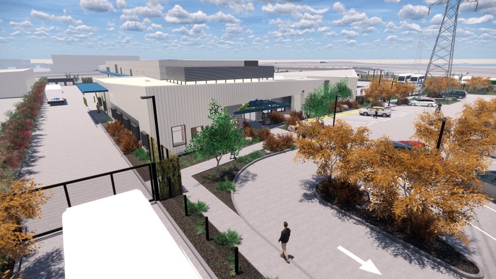 The 27,500-square-foot operations and maintenance facility will include parking for up to 67 public transit vehicles, as well as 84 visitor and employee vehicles, and will include five repair bays, parts storage, and locker rooms.