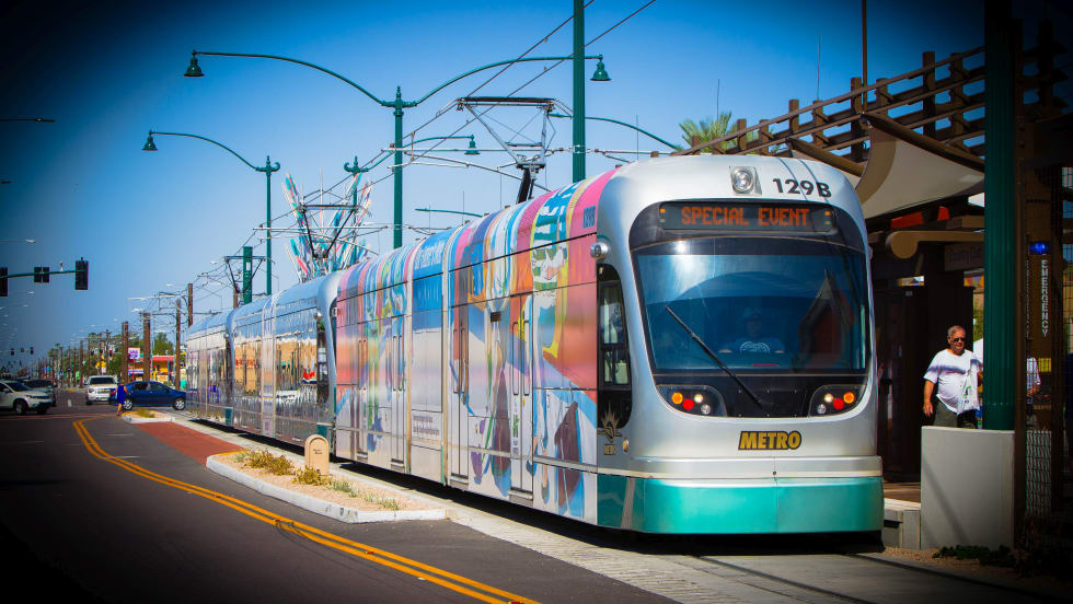 Valley Metro Rail’s 3.1-mile Central Mesa light rail extension, which includes four new stations along Main Street, was added to the rail line to meet the growing transit demands in the city’s East Valley section.