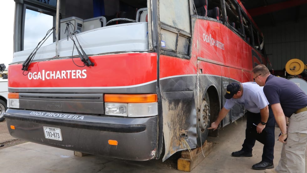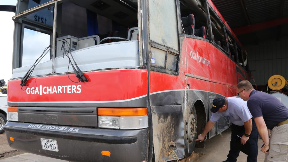 The OGA Charters bus crashed Saturday north of Laredo in rainy conditions, killing eight and injuring 44 more passengers. No other vehicles were involved.
