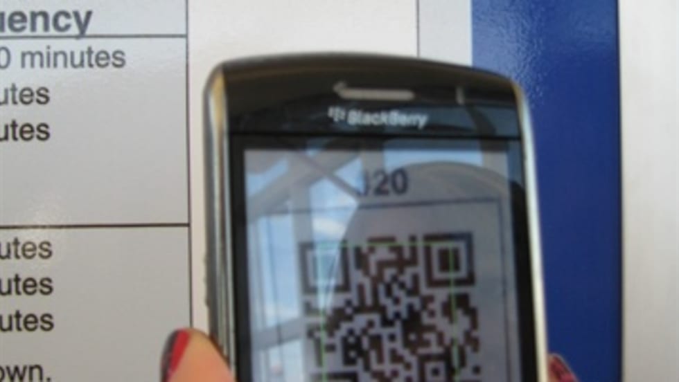 The two-dimensional barcode, made of small black squares and rectangles, is arranged in a square on a white background that typically leads to text, a URL or other information. In RTA's case, QR codes lead to a specific map and/or route information.