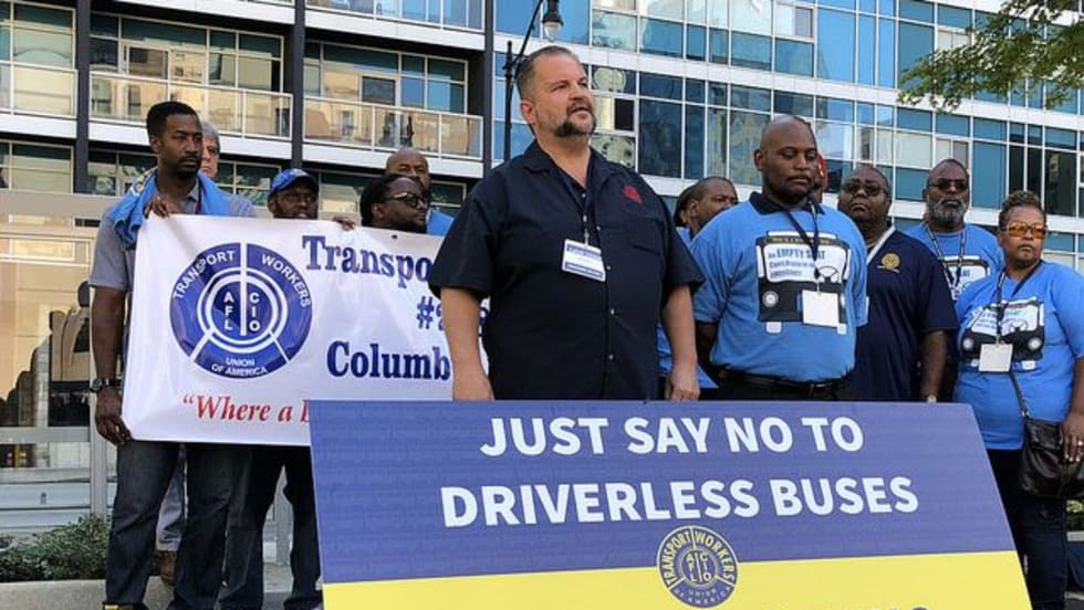 Members of the agency's union distributed flyers Wednesday afternoon, warning riders about the "dangers" of commuting on driverless buses.