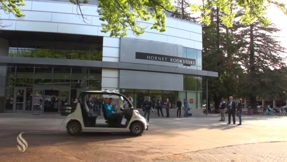During a two-day demonstration in mid-March, Sacramento State students, faculty, and staff got to ride an electric, self-driving shuttle between certain points on campus.