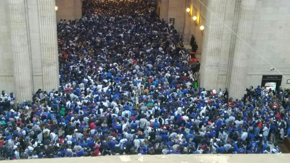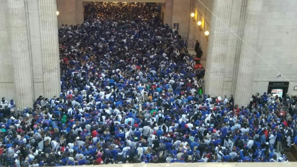 Ridership during the Cubs rally was 61% greater than that of the first Friday in November 2015, when Metra carried 285,078 passengers.