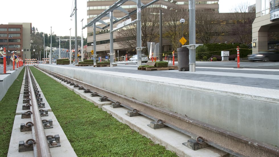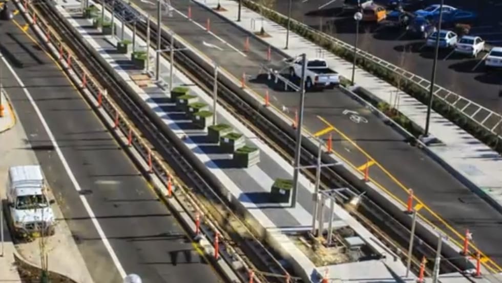 Read More →TriMet's eco-track system included drainage mats, irrigation and soil. This timelapse shows the installation of the final layer, mats holding the vegetation being placed between and next to rail on both the northbound and southbound trackways.