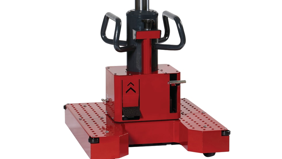 Stertil-Koni’s free-standing rolling pit jack, with a capacity of 30,000 pounds, is designed to safely operate on the pit fl oor entirely independent of upper pit edges.