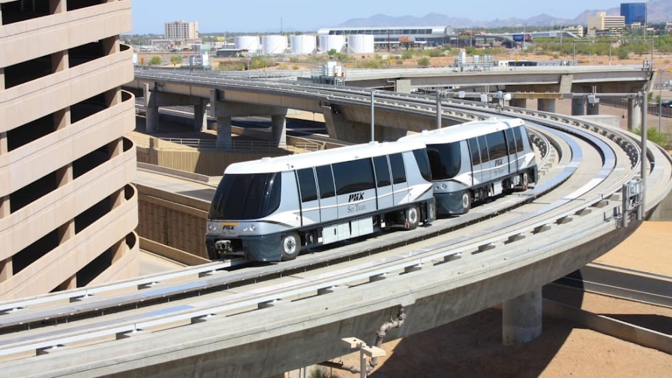 The first phase of the $1.6 billion project connects with Terminal 4 — which handles 80% of Sky Harbor's passengers — and includes stops at an economy parking lot and a Metro light rail station.