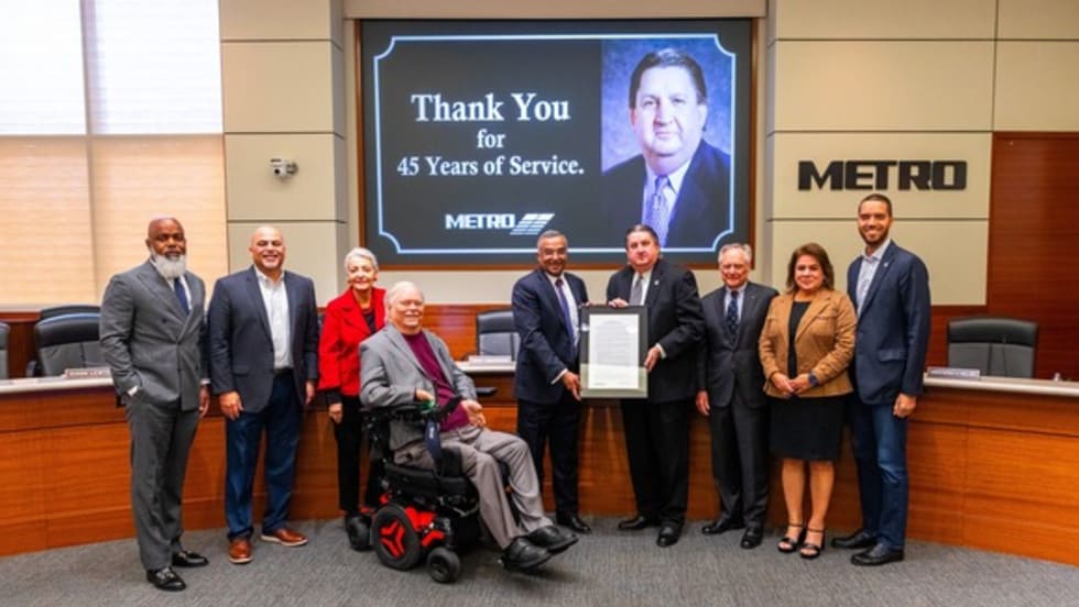 The Board recognized Lambert with a proclamation that highlighted his advocacy for enhanced customer experience, his commitment to public safety, and his contributions that improved public transit throughout the Houston region.