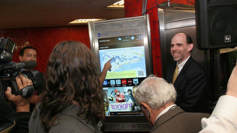 The sleek, stainless steel enclosure supports a large screen with a colorful display, offering customers information about their entire trip, from planning with Trip Planner, real-time service status, escalator and elevator status, and local neighborhood maps.
