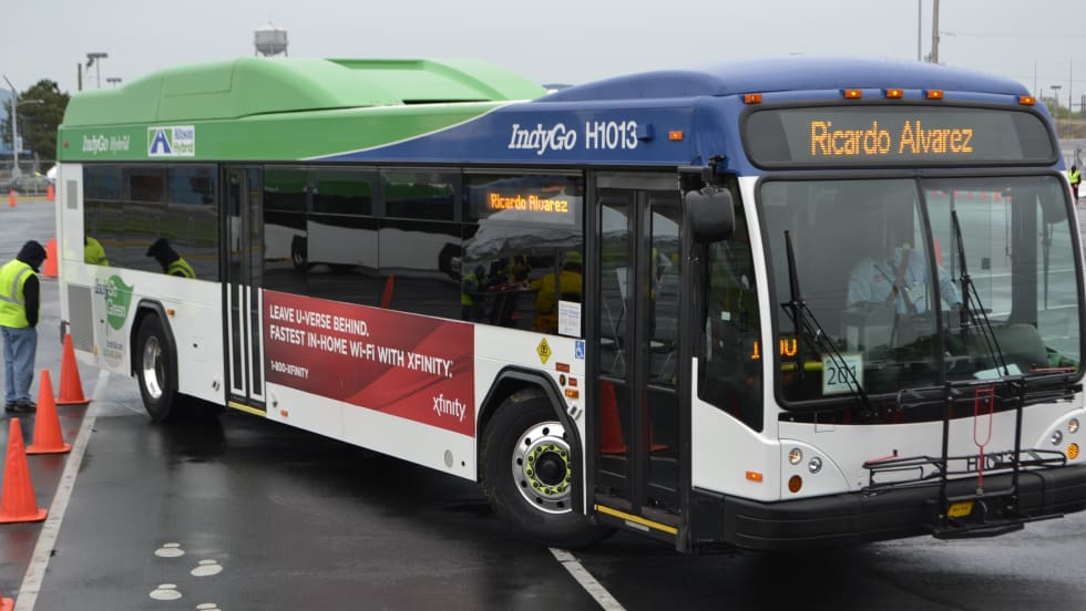 An Allison-equipped hybrid test vehicle was used in the 12-meter bus competition, characterized by APTA as the “ultimate test of a bus operator’s driving skills.”