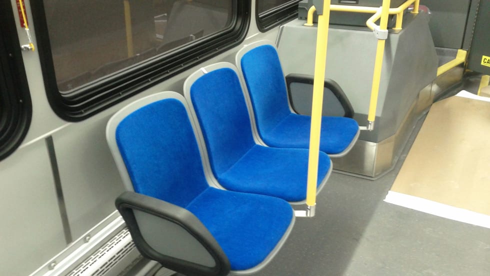 Blue seats will be designated for persons with disabilities, the elderly and expectant mothers. The new seating being introduced first on the system’s new articulated buses and expanded to all vehicles over the next two years.