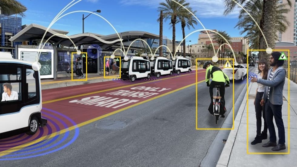 The shuttle uses an array of sensors outside of the vehicle providing a full 360-degree view of the environment.