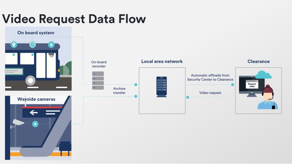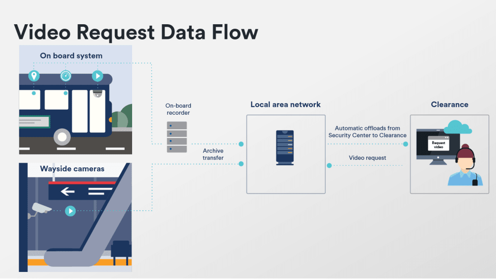 Genetec Clearance eliminates the process of dispatching transit personnel to vehicles and stations, transferring video to external drives, and delivering it to requesting parties.