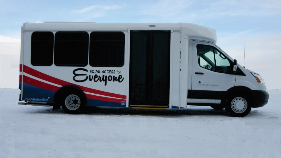 The vehicle features a 96-inch width and a flat floor design that allows stress-free maneuverability for up to fifteen ambulatory and five wheelchair passengers, according to the company.