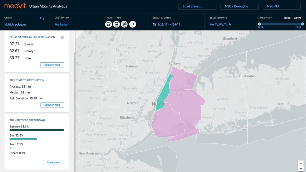 Moovit is the first public transport app based on combining crowd-sourced, real-time data with existing schedules to give commuters a minute-by-minute picture of what their journey will be like and identify if there is a faster, or more comfortable alternative at that precise moment.