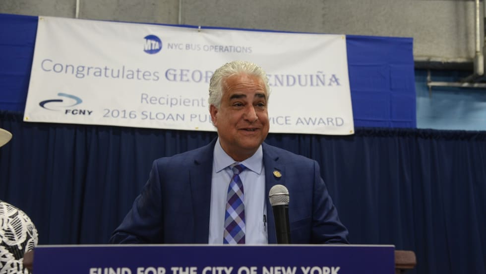 George Menduina, MTA New York City Transit’s VP and chief facilities officer, Department of Buses, received a prestigious award, which celebrates dedication and commitment to outstanding public service to New York City delivered at the highest level of excellence.