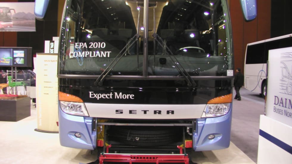 Testing compared the all-new S 417 with the EPA 2010 Mercedes-Benz BlueTec engine versus the Setra S 417 with a DDC Series 60 EPA 2007 engine.