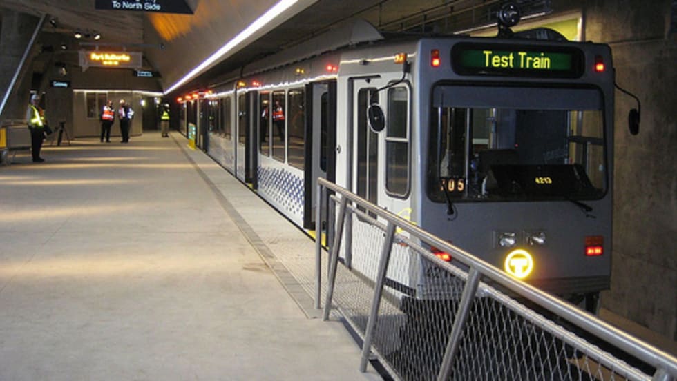 The $523 million North Shore Connector shuttles passengers between the new Gateway Station downtown to the elevated Allegheny Station, adjacent to Heinz Field on the North Shore.