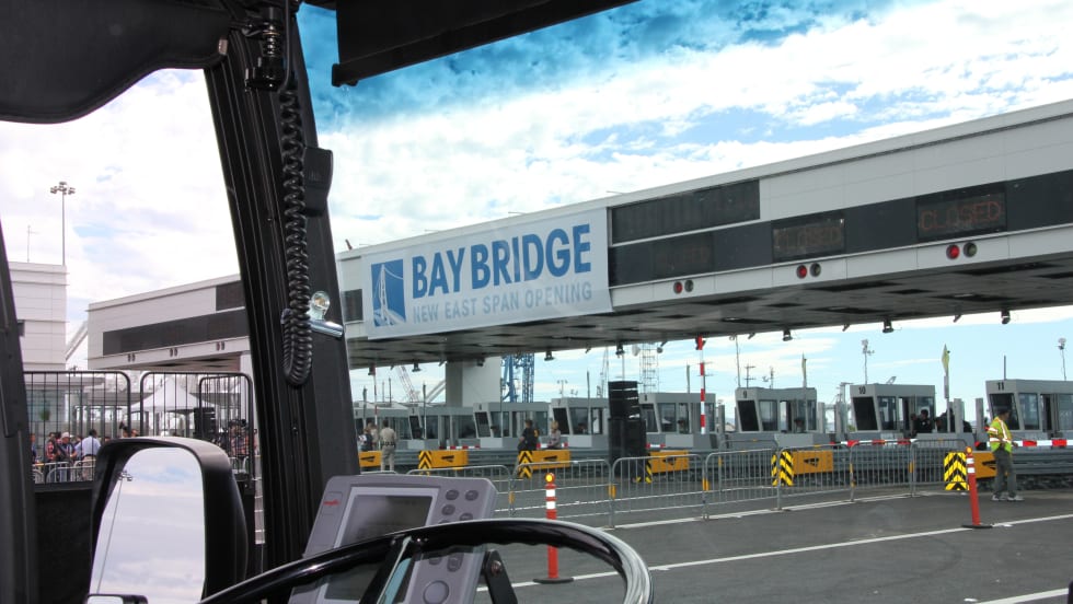 The agency commissioned one of its freshly acquired “Better Ride” New Flyer 2200 series, 60-foot coaches for the opening festivities. In all, five other AC Transit bus operators drove coaches as part of the opening ceremonies to commemorate the new Bay Bridge.