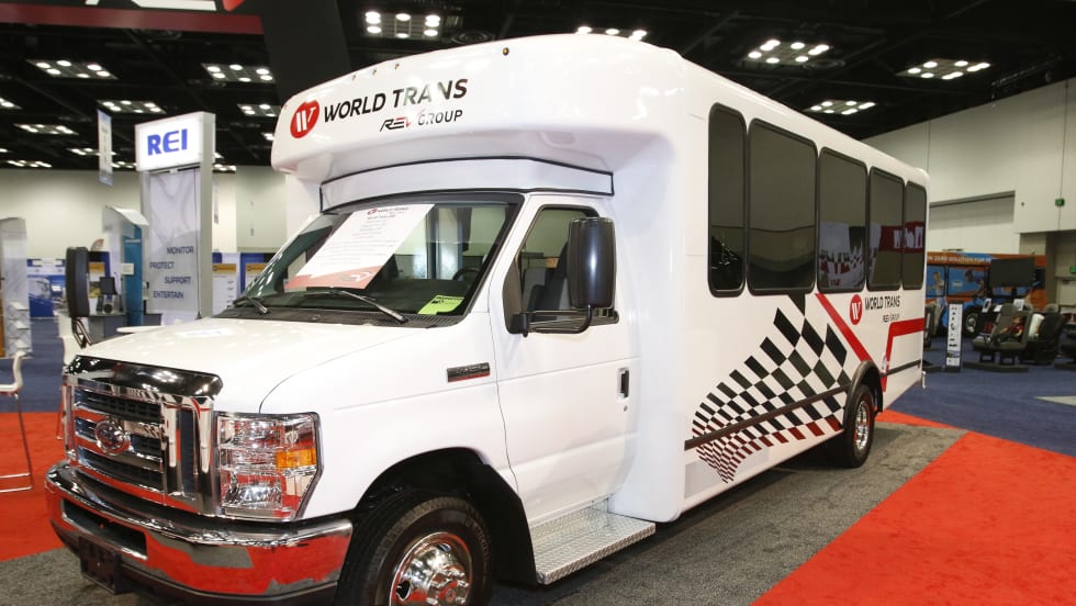In addition to launching its World Trans bus brand, REV also debuted the never-seen-before E-Series version of the vehicle, which is built on the Ford E-350/450, at BusCon.