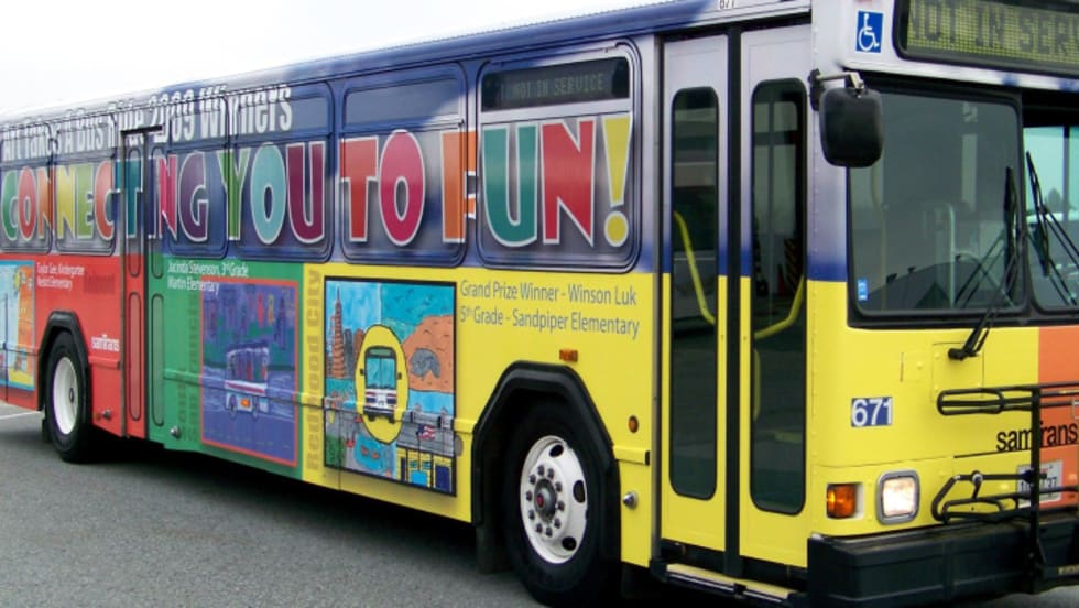 Six winning designs, which were selected from more than 400 entries submitted by local students from kindergarten to fifth grade, were judged to best illustrate the theme “SamTrans Connects You to Fun Events.”