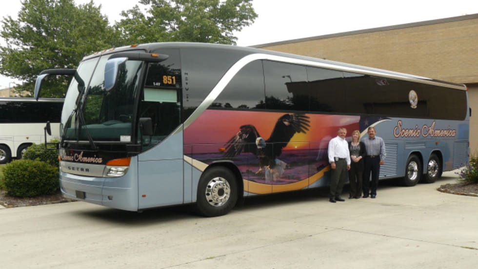 The two new Setra S 417 coaches delivered to Scenic America each feature the TopSky, a unique unobstructed view of the sky that creates an open feeling to the coach.