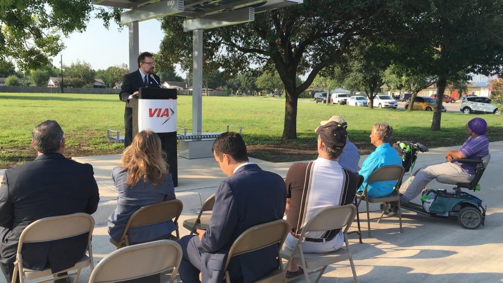 The City of Kirby will be among the first in VIA’s 14 member cities to feature solar-powered lights installed in nine new VIA bus shelters.