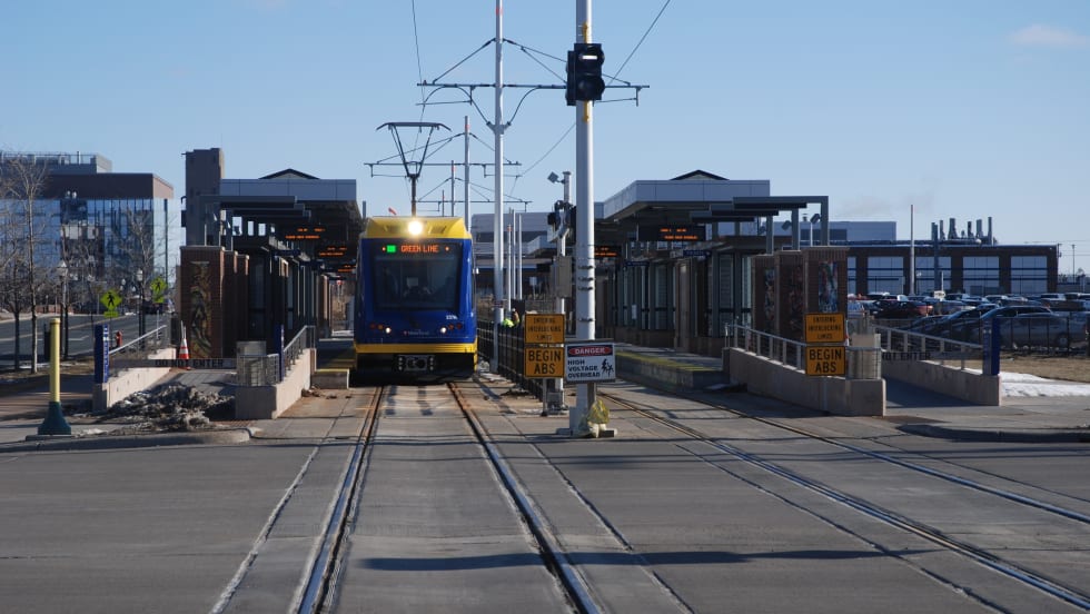 The Green Line is an 11-mile light-rail line connecting downtown Minneapolis, the University of Minnesota and downtown St. Paul.