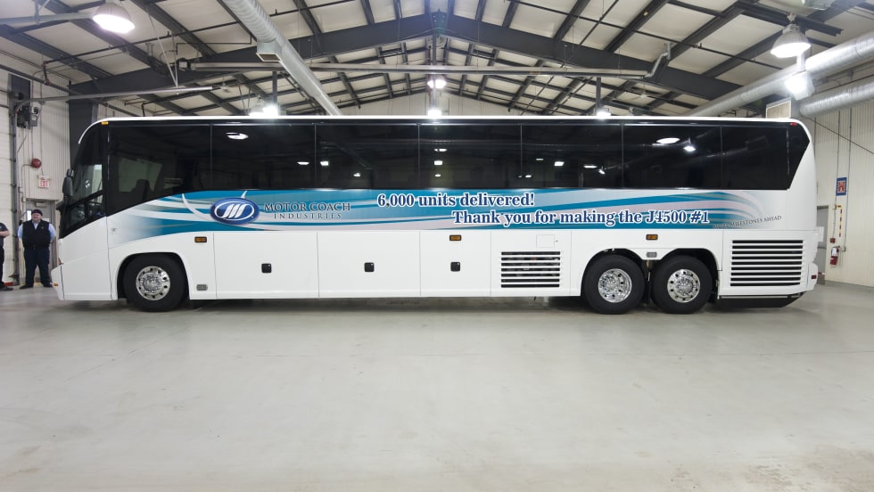 The new MCI J4500s feature a new, smooth, wide-ride suspension, electronic stability control, fire suppression system, tire-pressure monitoring and the newest clean-diesel engine technology.