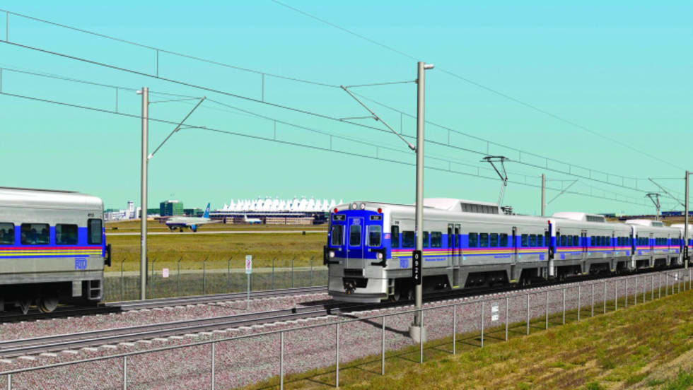 The East Corridor rail line is part of the Denver Regional Transportation District's $2.3 billion Eagle P3 project to be funded by a public-private partnership. Electric multiple-unit commuter rail trains will carry passengers from downtown Denver to the Denver International Airport.