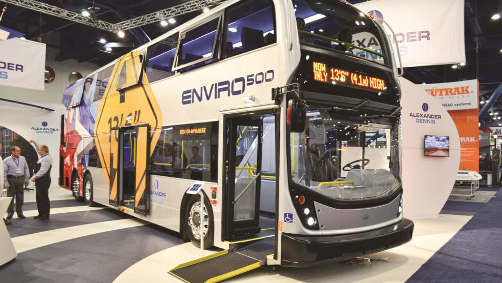 The new-look Enviro500 double deck bus, at just 13 feet, six inches in height, will operate virtually anywhere in the U.S. and Canada.