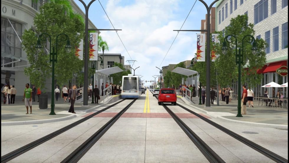 The 2.7-mile Fort Lauderdale electric streetcar system, called "The Wave," will operate in part via overhead electrical wires in some areas and by battery power in others