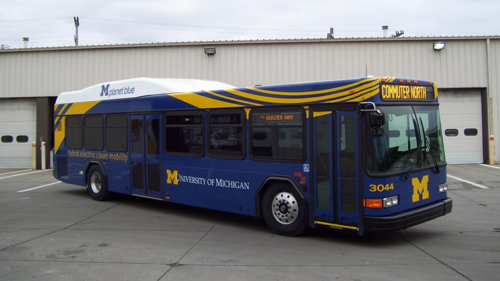 Sporting a maize and blue color scheme and new graphic treatment, the 40-foot buses use a roof-mounted battery system to supplement their diesel engines, allowing for better fuel mileage and lower emissions. Three additional buses will be operational in the fleet by mid-January and three more will be in service this fall.