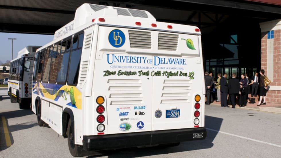 Built by California-based Ebus, the vehicle features fuel cells from Ballard Power Systems. Newark, Del.-based Air Liquide is providing a climate-controlled facility to store the vehicle.