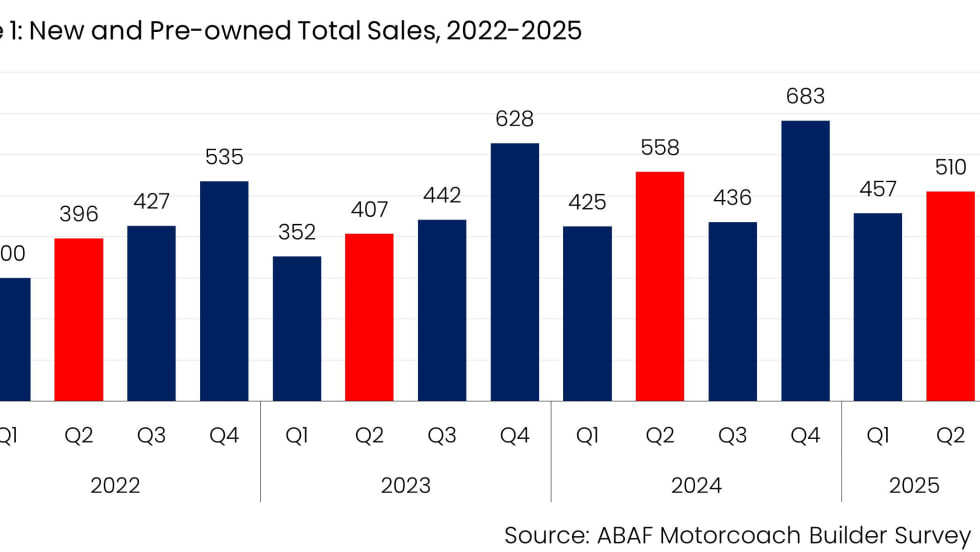 The survey, produced by the ABA’s research arm, the American Bus Association Foundation, reports quarterly on data collected from surveys of major motorcoach manufacturers that sell vehicles in the US and Canada.