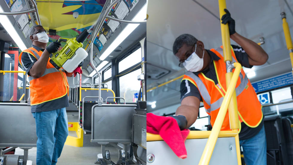 The agency is also using electrostatic sprayers to clean and sanitize its entire fleet of approximately 500 buses every evening and disinfect high touch surfaces on 200 buses throughout the day.