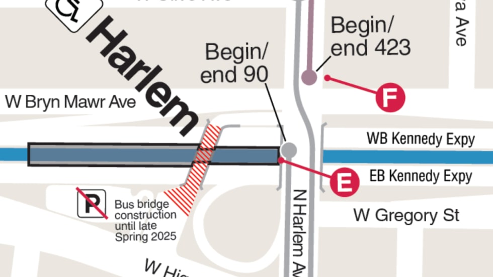 Beginning Feb. 19 at 7 a.m. through early 2025, crews will work to demolish the more than 40-year-old Harlem Blue Line station bus bridge deck and reconstruct a new one in its place.