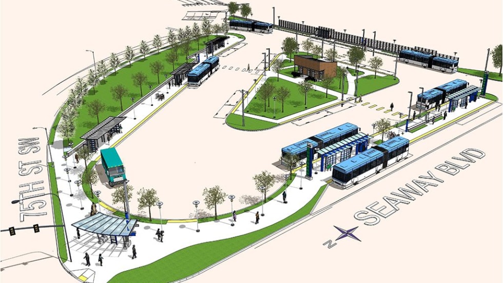 The Seaway Transit Center will serve Paine Field area buses, including the new Swift Green Line.
