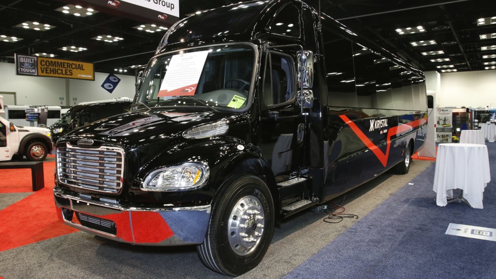 The Krystal KLX40 will have its first limo-style luxury bus on the reliable Freightliner S2C chassis debuting at the show in Las Vegas, while the Spirit CS (Corporate Shuttle) on the Ford E350 chassis will feature dual rear wheels for stability.